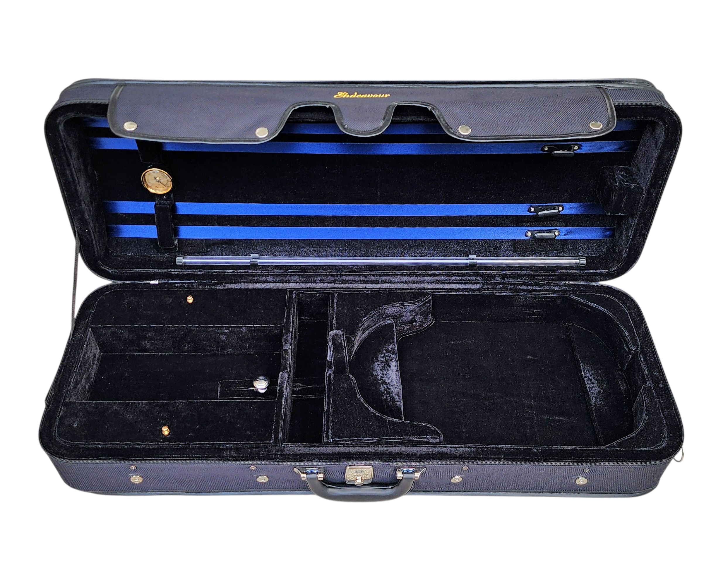 Beautiful Endeavour lightweight viola case, oblong shape as shown in picture (viola not included). Constructed from convenient lightweight sturdy foam, with a weather resistant nylon cover. This viola case has an adjustable interior cushion so you can make sure your viola fits snugly, no matter what size viola you have. The extra zip pocket on top conveniently fits A4 music sheets. Plush velvet interior .